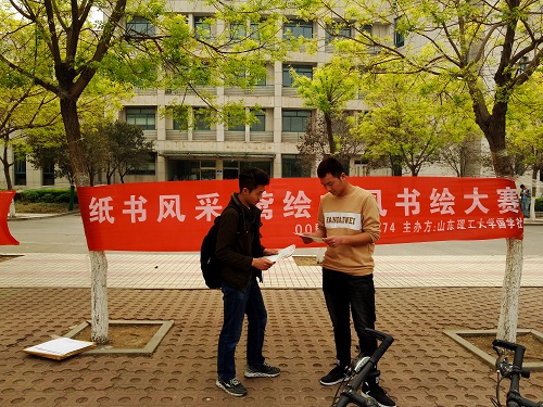一大早,国学社负责宣传活动的成员便奔赴各大餐厅门口,拉起横幅,摆上桌子,准备好报名表和宣传单,等待感兴趣的同学前来报名。不一会儿,前来咨询报名的同学们便将宣传点团团围住。国学社负责宣传的工作人员耐心地为同学们讲解纸鸢和书画的历史并且解答同学们关于比赛的疑惑。准备报名参加比赛的同学各个都情绪高涨,想要在活动中找到乐趣,并且取得一个好的名次。