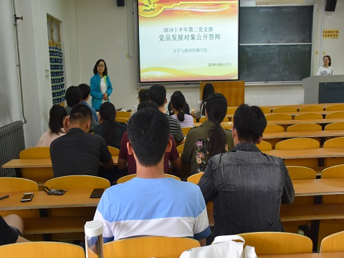 (本站讯)5月17日下午,2018上半年党员发展对象公开答辩在1号教学楼216教室和312教室进行。员工党支部全体党员、党员发展对象、入党积极分子代表参加会议。员工第一党支部书记刘菲菲、第二党支部书记田明月主持答辩。