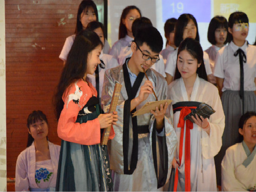 此次团支部风采大赛的主题为“传承英雄精神,争做‘五有’人才”,比赛共分为团支部基本风貌展示,团支部特色展示,团支部风采展示三个环节,入围决赛的团支部根据赛前的抽签顺序依次上台展示。各团支部以PPT的形式充分展示支部在学风建设、组织建设、校园文化活动等方面的特色与成绩。在支部风采展示环节,广告1702团支部的朗诵《英雄》以及合唱《天耀中华》首先点燃了现场氛围,展现了团支部成员旗开得胜的志向。中教1701团支部以历史剧的形式重现了爱国诗人屈原的英雄史诗,动情的表演给在场观众留下了深刻印象。中教1703团支部一首《光荣啊,中国共青团》表达了对祖国的热爱与期盼,体现出本支部是一个朝气蓬勃、思想先进的青年集体。随后,比赛进入高潮阶段,广告1602团支部和广告1601团支部融歌舞、戏剧、手语操等多种形式为一炉,展现了热爱生活、积极进取的良好精神风貌,赢得了在场师生及评委的阵阵掌声。中教1601团支部结合中国优秀传统文化,用笔墨绘深情,以经典和时代交融的艺术构思展现出“谦谦君子,温润如玉”的优良品格。最后,团支部风采大赛在评委点评中顺利结束。据悉,获奖名单将会在近期公布。