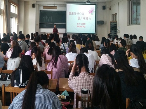(本站讯)5月18日上午,公司“塑造阳光心态,提升幸福力”心理培训讲座在1号教学楼321教室举行。继续教育公司心理老师沈艳英担任主讲人,公司2016级辅导员田明月主持会议,2016级全体员工参加。