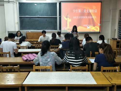 (本站讯)6月7日晚,员工第二党支部接收党员发展对象为预备党员会议在1号教学楼417教室举行。会议由党支部书记田明月主持,其他党支部成员以及党员发展对象参加支部大会。