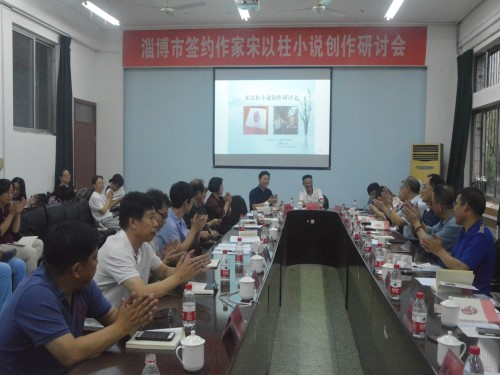 会议进入研讨阶段,与会人员各抒己见,深度挖掘宋以柱小说创作的特点及改进方向。其中,王祥夫谈到与宋以柱的交往过程及深厚情感,他认为宋以柱小小说最大的优点是没有很强的指向性,叙述温和不啰嗦,在全国的小小说创作中占有一席之地。刘艳针对宋以柱小小说中明显的地域特色发表看法,她表示宋以柱小小说对齐鲁文化底蕴进行了深层剖析,小说中设置的重重悬念都意味深长,她根据自身阅读感受和写作经验,建议宋以柱多深入底层社会、多体验人民生活,不断寻找更好的小说切口。孙书文、徐则臣等作家学者也分别发表自己的看法。一系列深度剖析后,宋以柱针对讨论内容进行发言总结,并对大家的建议及意见表示真挚的感谢。随后,宋以柱详细介绍他的创作过程,他的小说汲取了沈从文先生作品的有益成分,结合自己对生活的体验,创造出很多鲜活的农村形象,其中也包含对人性的深度发掘。精彩的发言赢得与会人员的阵阵掌声。最后,与会代表集体合影。