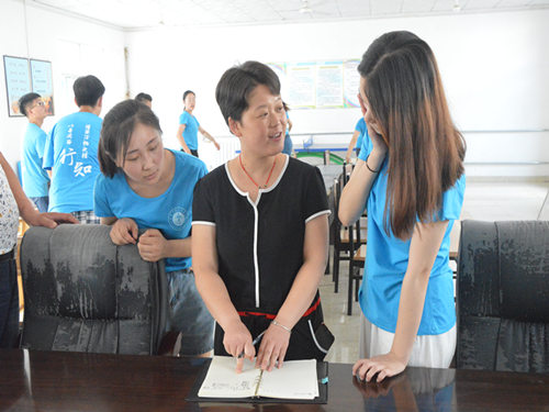 下午四时,队员们利用村内广播进行招生宣传,号召家中有适龄的孩子积极参与。随后,村民们陆续带领孩子前来咨询报名,队员们仔细登记报名成员资料。孩子们稚嫩的面庞、期待的眼神和饱满的热情,更加强了实践队员们肩上的责任感和使命感。对于家长前来咨询课程安排等问题,老师与实践队员耐心分析,认真讲解。忙碌过后,实践队员们详细制定接下来的进展计划,并对授课方式、人员分配、新闻宣传等内容进行进一步的商榷和调整。