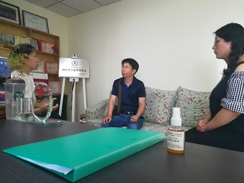首先李主任向郑老师介绍了绿丝带的发展状况,并在李主任的带领和Tan(探真者)实践团队员的陪同下,参观了绿丝带发展中心的党员活动中心、自然博物馆、多功能厅、事业办公室和环境宣教中心。