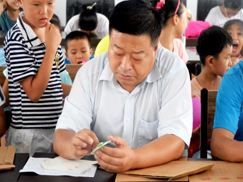 随后,成员们把前期准备的装有每个孩子的剪纸作品、绘画作品、作文、综合评定的档案袋交给村委会领导和公司教师观看,将教育实践成果具象化展示。接下来,进入颁奖仪式,由李希胜、李先凯、李华伟和田明月为孩子们分别颁发“最美童声奖”、“才艺之星”、“卫生小标兵”、“朗读小老师”等荣誉证书。在领导发言环节,李先凯对“行知”社会实践团的认真教学和辛勤付出表示感谢,期待着实践团下次的到来。李华伟对东同古村两委提供的实践平台表示感谢。对行知实践团圆满完成实践任务表示祝贺。希望小朋友们好好学习,茁壮成长,将来能够以优异的成绩报答父母、建设家乡、报效祖国。希望实践团成员认真总结经验,查找不足,为今后开展社会实践工作提供借鉴。同时,希望大家在接下来的工作和学习中继续发扬能吃苦、能战斗、能干事、干成事的文传员工会精神,创造性做好思想引领、服务同学、当好桥梁等方面的工作,为公司、公司的建设和发展贡献青春力量。