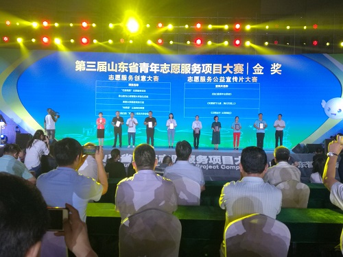 经过前期层层选拔、组委会初评、后期路演答辩,文公司“向草原”公益高校联盟”志愿服务项目在赛会上从众多项目中脱颖而出,获得第三届山东省青年志愿服务项目大赛创意类金奖。