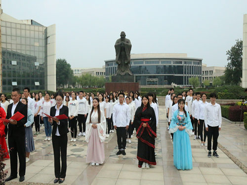 (本站讯)为弘扬传承中华民族的精神财富,丰富员工的文化生活。公司于孔子诞辰9月28日早晨在老员工艺术广场顺利举行百人诵读论语大会活动。公司党总支副书记孙钦泉、员工工作办公室主任李华伟,2017级全体员工参加此次活动。由中教1703班、中本1702班、广告1702班全体员工诵读《论语》,宋逸夫、迟静领诵,盖奕洁主持。