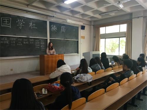 (本站讯)年年岁岁花相似,岁岁年年人不同。10月11日下午,国学社换届大会于一号教学楼216室如期举行。国学社社员及各部门部长到场。