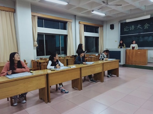 (本站讯)为弘扬中国优秀传统文化,传承国学经典。10月21日晚,由国学社举办的论语大会决赛于一教312教室顺利举行。参赛选手来自大一大二的各个公司。