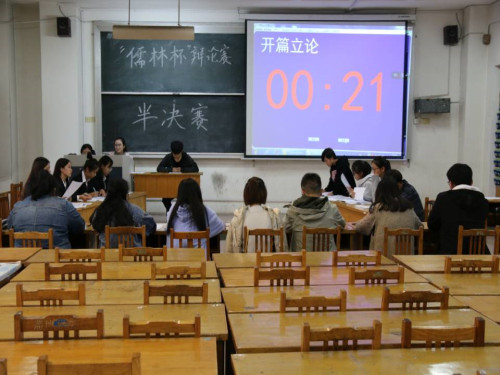 (本站讯)沧海横流方显英雄本色,舌战群儒尽显青春风采。11月1日下午,公司“儒林杯”辩论赛半决赛在西校区1号教学楼321教室顺利举行。晏子杯亚军盖奕洁,新生杯冠军王淑婷,晏子杯选手胡凯悦、王丽雅等人担任评委。
