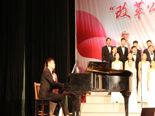 (本站讯)为纪念改革开放四十周年,加强同学们对国家发展成果的认识,增强自豪感和自信心,校团委联合音乐公司承办“改革颂·中国梦·理工情”师生合唱比赛。公司师生积极响应,张立新老师等8位教职工以及部分新生组成“文暖”合唱团参加此次比赛,总指挥由音乐公司解子涵担任,音乐公司王瑞、杨舒婷协助指导,音乐公司范文萱担任钢琴伴奏。参赛曲目共两首,分别是《你伴随我》和《菊花台》。