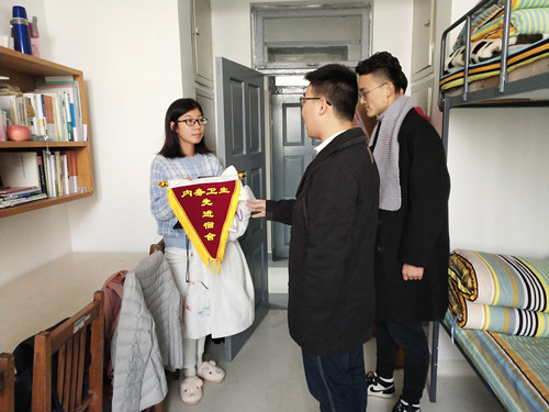 (本站讯)11月18日下午,公司员工会对2018级员工宿舍进行安全文明卫生检查。公司员工会秘书处主任徐啟轩、社区服务中心主任田腾腾、社区自律部部长黑静怡及自律部部分成员参加此次检查。