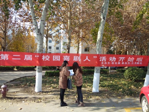 喜剧演出博风采,欢笑之余有感悟。活动伊始,三月剧社社员们采用挂横幅、发传单、口头表达的方式向同学们及时传达此次活动的具体内容和活动流程。而后,工作人员对比赛目的、参赛流程及活动要求做了详细介绍。此次活动坚持“为表演梦搭建舞台”为宗旨,本着宣传喜剧文化、丰富校园生活的意愿。随后,工作人员向现场报名者对活动规则做简要说明,活动要求每组参赛选手成员不超过10人,自选喜剧剧本,在喜剧效果中突出正能量,让观众们在观赏过程中感悟喜剧魅力。在宣传过程中,社员们热情地与同学们互动交流,吸引了众多喜剧表演爱好者们前来咨询,同学们踊跃报名、积极参与,活动现场气氛十分活跃热烈。据悉,活动分为喜剧比赛和专场演出两个环节,在11月25日下午的喜剧比赛中胜出的团队将会在12月2日进行专场表演。