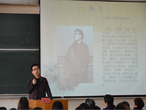 (本站讯)11月26日上午,“金秋文学周”系列活动之海飞专场讲座在1号教学楼312教室举行。中国作协会员、国家一级作家海飞担任主讲,淄博市作家代表与公司师生代表参加此次活动。