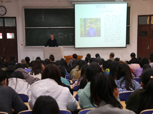 活动伊始,主持人对胡学文和现场观众的到来表示感谢和欢迎,并简单介绍胡学文的代表作品和获奖情况。紧接着,胡学文以“文学与地域”为主题进行专题报告,聚焦时代热点,从“不同作家的写作风格不同”切入,提到写作是个性化的劳动,写作风格是区别各个作家的重点,也是决定读者喜爱程度的关键,并以卡夫卡、托尔斯泰等为实例阐述影响作家风格的成长环境、生活条件等因素,引出地域对文学风格塑造的重要影响。之后,他还提出“地域文化虽不可以决定作品的优劣,却是一个人写作风格形成的重要因素。”的观点,从东西方文化的差异、全国各省语言的差异、城市与农村的作家等几个方面展开讨论,提到如俄罗斯、日本等的东西方文化或是城乡文化、南北方文化都不能互换,不同文学作品各异的地域特点尤为明显,表现出地域对思维方式、文化作品等各方面的影响。他还讲到,文学地域是作家自己构建的,与真实的地域是不同的,写地域但要超越地域,并以莫言和贾平凹的作品和人生经历为例进行详细阐释,莫言的成长环境为他带有乡土色彩的写作风格奠定了基础。随后,他简要讲述了美国作家罗恩拉什《艰难时世》的故事梗概以及某一具体情节,与现场观众进行互动,让观众自由发挥,续写故事情节。现场观众积极回答,引得阵阵掌声,气氛活跃热烈。最后,此次专题讲座在热烈的掌声中结束。