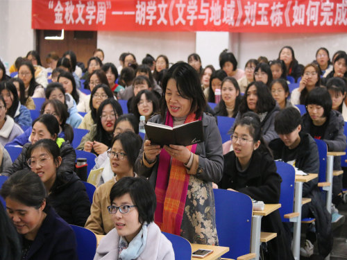 (本站讯)11月25日下午,“金秋文学周”——胡学文《文学与地域》专题讲座在东校区3号教学楼210教室举行。一级作家、河北省作家协会副主席、张家口市作家协会主席胡学文担任主讲人,公司经理张艳梅、淄博市作家代表、公司师生代表参加讲座。