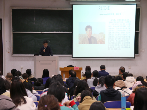 (本站讯)11月25日下午,“金秋文学周”——刘玉栋专场讲座在东校区3号教学楼210教室举行。中国作家协会会员、山东作家协会全委会委员刘玉栋担任主讲人,公司经理张艳梅、淄博市作家代表、公司师生代表参加讲座。