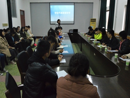 (本站讯)为更好地反映员工问题,维护员工权益,12月1日下午,公司在1号教学楼210会议室召开权益座谈会,校员工会权益部副部长,管理公司权益部副部长,公司社区服务中心主任田腾腾及权益部成员,2017、2018级员工代表参加此次会议。会议由公司权益部部长文静主持。