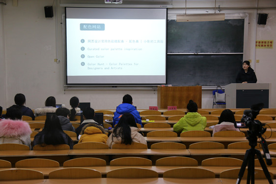 紧接着,苑林双为同学们带来朋辈课堂第一课。她向大家介绍了部分广告人常用网站,并希望同学们可以经常浏览这些网站,以此提高自己的专业能力和审美水平。她利用多媒体展示优秀作品直观明确地向同学们讲解了异影同构、适形同构、延异图形等PS图形创意手法。苑林双还通过演示和讲解PS亮度、对比度、饱和度、色阶等工具向大家实际操作展示了PS的基础教程以及如何修图,并告诉大家在修图时应注意曝光度不准确会使图片不自然等常见问题并合理使用手法和技巧。
