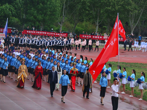 伴随着主持人热情饱满的开场介绍和慷慨激昂的运动员进行曲,运动会开幕式正式开始。各公司仪仗队身着整洁大方、富有特色的服装,迈着整齐划一、强劲有力的步伐进入运动场。青春的脚步,疾如金秋之风;绽放的笑容,灿若春晓之花。文学与新闻传播学院学子身着民国风服装以及极具公司特色的古风服装入场,他们意气风发,神采飞扬,展示了学院文雅温和、落落大方的魅力风采。他们笑容满面,精神饱满,每一张面孔都充满朝气和活力,充满刚毅和无畏,在积极向上、波澜不惊的背后,是微凉的风中轻轻发抖的手臂,是日复一日刻苦严格训练的缩影,是每一位同学坚持不懈的成果。他们用赤诚和热血铸就仪仗方阵,用青春和汗水铸就英姿雄风,他们用器宇不凡、英姿飒爽的姿态诠释了“凌空气挟风雷势,望远情融日月光”。