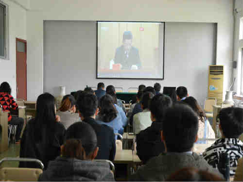2019年4月30日10时30分,纪念五四运动100周年大会在人民大会堂举行。参加此次观看活动的老师和同学们提前达到会议室,通过观看视频直播的方式聆听中共中央总书记、国家主席、中央军委主席习近平发表重要讲话。讲话伊始,习近平主席从五四运动爆发的历史背景入手,强调五四运动历久弥新的时代意义。而后,他推心置腹,为广大青年朋友们提出六点建议:第一,新时代中国青年要树立远大理想。第二,新时代中国青年要热爱伟大祖国。第三,新时代中国青年要担当时代责任。第四,新时代中国青年要勇于砥砺奋斗。第五,新时代中国青年要练就过硬本领。第六,新时代中国青年要锤炼品德修为。习近平主席讲到,青年要保持初生牛犊不怕虎,越是艰险越向前的刚健勇毅,勇立时代潮头,争做时代先锋。老师和同学们严肃而专注,专心聆听习近平主席讲话,并认真做好笔记。习近平主席讲话结束,会议现场演奏《国际歌》,老师和同学们全体起立,纪念五四运动100周年大会观看活动在肃穆庄严的气氛中结束。