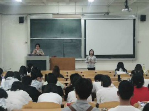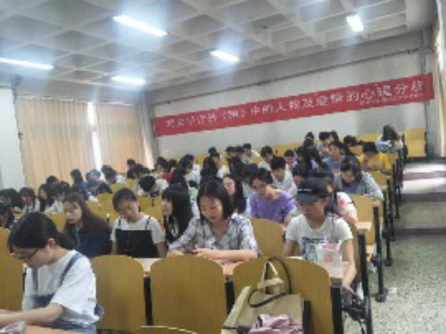 报告会伊始,四位同学上台分享读书感悟,讲述自己与《飘》的故事。王梅对四位同学的感悟做补充和点评,现场氛围活跃,气氛渐入佳境。而后,由王梅做读书主题报告。她从书中的主要人物入手,对《飘》进行解读。她用“多棱镜”一词描述女主,并对其每个侧面详细解说。她认为,斯嘉丽是一个复杂独特的人物形象,而其最大的特点在于集女性气质与男性气质于一身。之后,王梅又对书中人物艾希礼进行剖析,由他守礼专一的品质引出大家对男友评判标准的讨论,并邀请现场女同学做调查分享。随后,王梅多层次分析本书男主白瑞德,她讲到,瑞德在爱情里是进击的猛士,是调皮的坏蛋。她通过对瑞德的人物心理进行深刻分析,使同学们对这一人物形象理解更加透彻。在读书主题报告中,王梅结合书中情节分析人物特征,并引用当下新闻对比凸显主旨,以此引发同学们深刻思考。最后,王梅为此次读书推广报告会做简要总结。她说,虽然活动接近尾声,但青春还长,每个人的路程还远。她希望此次活动可以使同学们有所收获,这本《飘》可以带给同学们不一样的爱情启发。