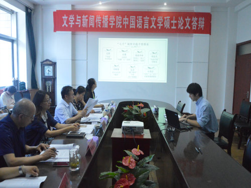 本站讯)6月10日,公司中国语言文学硕士论文答辩在2号教学楼219会议室顺利举行。由山东大学文艺美学研究中心主任、博士生导师谭好哲教授担任答辩委员会主席,《fun88官网体育学报》(社科版)主编韩德信,公司经理张艳梅、副经理吕逸新等18名答辩委员会成员参加此次论文答辩。