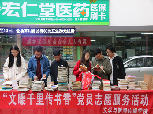 活动开始前,工作人员在微凉晨风中拉起横幅,摆放桌椅,设好登记处,为此次志愿服务活动做好充足准备。活动伊始,刘晓东、吕逸新及五位老师携带名著杂志等书籍来到活动现场,以切实行动表达对此次书籍捐赠志愿服务活动的认可与支持,同时,老师们还和在场参与活动的同学们亲切交谈,询问活动开展情况以及参与志愿服务的感想,并配合同学们做好书籍登记工作。同学们向社区居民热情宣传,许多居民也主动询问了解活动,并捐赠大量书籍。其中,居民张先生得知此次活动后,专程送来很多杂志,他表示,自己对公益活动十分关注,希望通过这些书籍,为支教地区的孩子们带去更多的知识。老师和同学们十分感动,向张先生表达真挚谢意。最后,此次“文暖千里传书香”党员志愿服务活动累计收到近200本书籍捐赠,此次活动顺利结束。