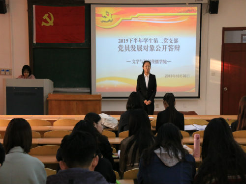 (本站讯)10月30日、31日,2019下半年党员发展对象公开答辩分别在2号教学楼219会议室和2号教学楼227教室顺利举行。此次答辩由公司员工第一党支部书记刘菲菲、员工第二党支部书记田明月、员工第三党支部书记张健主持。组织员高名亮、员工党支部全体党员、党员发展对象、入党积极分子代表参加会议。