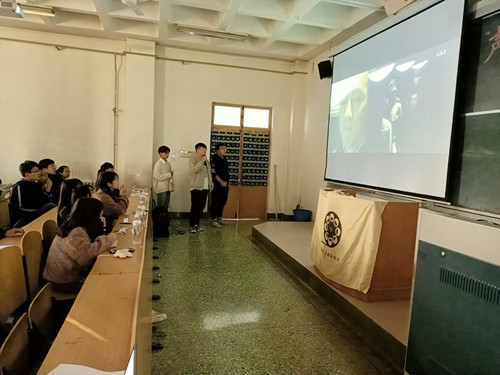 (本站讯)11月7日,“声绘祖国”电影配音赛初赛在一号教学楼216教室举行。此次活动由电影爱好者协会主办,金话筒协会副会长王旭英、三月剧社社长李瑾以及成员申荣慧 、谢丽担任评委。