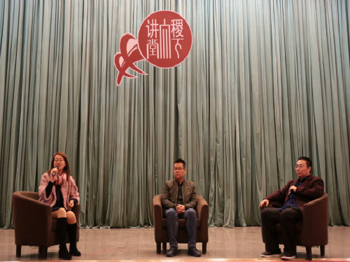 紧接着,我院经理张艳梅同徐则臣、驻校作家李浩展开对话,进行文学座谈。座谈过程中,徐则臣和李浩分别阐释自己对文学的认知,探讨文学与生活的关系,现场掌声雷动,同学们纷纷表示受益匪浅。最后的互动环节中,徐则臣一一回答了同学们提出的问题,并建议同学们写作要具备独特的声音和腔调,表达真情实感,发掘文章背后的那些人和事。报告会在掌声中落下帷幕。