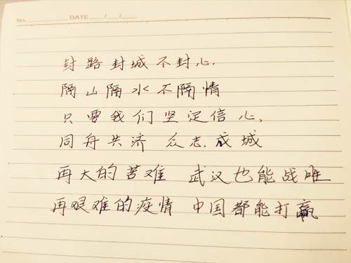 2020年初,一场来势汹汹的新型冠状病毒从武汉开始蔓延,被感染的人数逐渐增加,在这危机时刻,疫情防控阻击战也在全国范围里轰轰烈烈的开展。全国各地都展现出了坚决与病毒抗争到底的决心与毅力,每位公民都积极参与到这场“战争”中,声援“疫”线诵读活动就是在为武汉加油的意义下举办的。