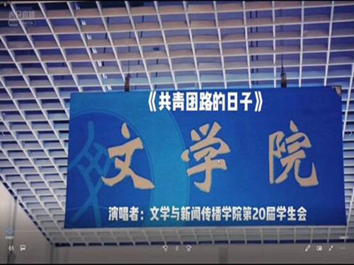 而后,第四个环节——“云合唱·致我们的永恒情谊”悄然而至。随着离别钟声敲响,毕业生们将踏着前进的曙光,追逐美好的梦想。同学们在《当我开始真正爱自己》的诗朗诵中沉默深思,在未来每个人都需要有爱与被爱的能力,学会爱别人也要学会爱自己;在致敬第18届员工会的视频中,复刻了他们在文苑生活学习的日日夜夜,他们用热爱、责任,为文院建设增砖添瓦,我们用心传达对他们的感谢;改编版《共青团路的日子》里歌词记录着从初入大学到走向毕业的匆匆四年,那些熟悉的场景和面孔、那些收藏着的青春纪念,深深触动同学们的回忆。虽即将奔赴未知的远方,我们依然是文传学子,即使往后生活各不相同,也要乐观面对一切。最后,在师生合唱《送别》的歌声中,观众以弹幕形式表达了对毕业生的祝福,至此,线上毕业晚会落下帷幕。