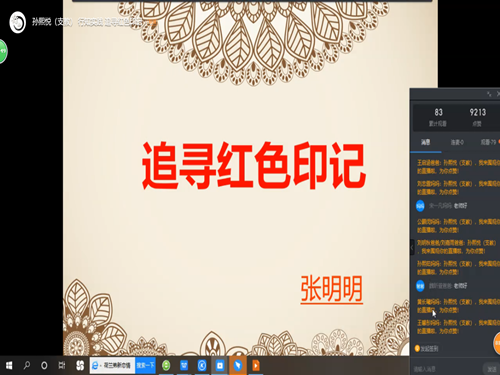 怀着紧张又期待的心情,张明明提前十五分钟进入线上课堂,在调试设备的同时,等待孩子们。一进入直播间,孩子们便热情地在对话框中问好、为直播点赞,一句句“老师好”、一个个五彩缤纷的点赞符号,让张明明逐渐放松下来,她带着笑容,温柔地给予孩子们回应。在铿锵有力的《义勇军进行曲》中,“追寻红色印记”线上课程正式开始。张明明为孩子们介绍歌曲作者、创作背景,讲述了中华民族在危亡之际的不懈抗争,以及国家建设的艰难险阻。在讲述与长征相关的知识时,张明明通过“什么是长征”引出内容,借助“红军”、“两万里长征”、“战略大转移”三个关键词,巧妙地将“长征”这一概念串联起来,讲给孩子们听。提到长征,就会想起我国伟大领袖毛泽东的《七律·长征》,张明明播放了相关的诗朗诵视频,帮助同学们认识字词、了解情感,之后,她又邀请小朋友们朗诵这首诗歌,鼓励孩子们积极参与进来。接受互动邀请,一张张稚嫩的脸庞出现在屏幕上,他们或活泼大方或有些害羞地向我们的志愿者问好。书声琅琅,童声清脆且坚定,流利且认真,看着孩子们小小的脸上写满一本正经,张明明露出了欣慰的笑脸。伴随着一个个精彩的长征故事,本堂课也接近尾声,张明明为孩子们总结了长征精神的含义,并叮嘱他们要学习这种不怕困难、乐观向上的红色精神。最后,孩子们同大家分享了他们的收获,有人说要不怕困难,有人说不能因为困难就放弃希望,还有人说要乐观,要想办法解决困难。童言无忌,赤子之心,愿红色文化可以让他们一直保持真诚乐观的心态,可以一直伴随他们成长。