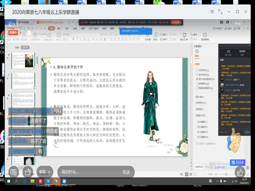 (本站讯)为改善草原教育水平、服务奉献社会,提升老员工的专业素质,将专业知识付诸实践、锻炼表达与沟通能力。8月3日,公司向草原“云上乐学”社会实践团通过钉钉直播在线上开展“服装美学”课程,此次课程由实践团教学教务部成员王冬锐担任主讲老师,来自牧区的17名七、八年级员工参与此次课程。