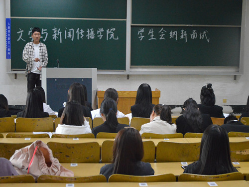 此次纳新活动分为限时演讲和自由答辩两个环节。面试伊始,各位应试者首先前往各自面试教室进行签到。之后,进入面试环节,应试者满怀热情,凭借对部门的初步认识,从自身优势、性格、个人经历等方面进行简单的自我介绍。主席团、各部门负责人根据面试者的现场表现与申请材料对应试者进行提问,综合考察,提出“对部门的认识”、“如何缓解工作压力”、“怎样协调好工作与学习的关系”等问题。竞选者认真思考并给出答案,灵动而沉着,阐明了“员工会是管理与服务并存”、“在大学中应积极参与丰富多彩的活动提高自身综合素质”等观点,思维清晰,语言流利,充分体现出文院学子的良好风貌。主席团及各部门负责人对各位同学的面试情况进行详细记录。此外,部分面试员工带来自己的摄影、视频剪辑作品,进行才艺展示,积极展现自己的才能,现场洋溢着同学们积极进取、昂扬向上的精神风气。