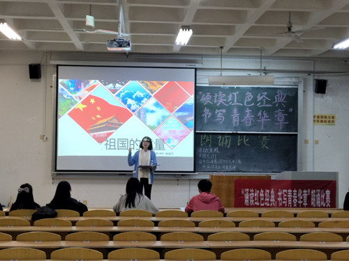 (本站讯)10月11日下午,公司蒲公英文学社在西校区1号教学楼312教室举行“诵读红色经典,书写青春华章”朗诵决赛。
