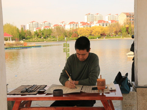 活动伊始,主持人介绍修禊之风的历史以及其与山东的文化渊源。修禊之风,历史悠久,《周礼》记载,修禊之时由女巫掌岁时祓除,参加者不限男女。魏晋以后,更成为文人生活的重要内容,其最著名者当属晋穆帝永和九年的兰亭雅集。之后,由诗词研究者、古琴演奏家、茶艺师各自表演诗词吟诵、琴曲演奏、茶道工艺等。而后,张德恒讲道,“雅集活动有利于攘除邪气,祈祷福瑞的作用,在三月三日于稷下湖畔举行此活动既是我们对于山东前贤的怀思,也体现了我们在特殊的形式之下复兴中国传统文化的决心。”与会师生积极地参与到本次雅集中,在稷下湖畔挥毫泼墨,吟诵诗词,弹奏琴曲,表演茶艺,通过亲身参与与实践切实感受到了中国传统文化的意蕴。