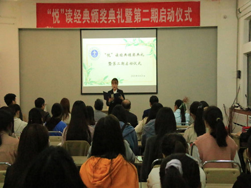 (本站讯) 每年的4月23日是世界读书日,在今年读书日到来之际,为帮助同学们更好地走进经典著作,激发读书学习热情,4月21日,公司“悦”读经典颁奖典礼暨第二期启动仪式在西校区2号教学楼210教室顺利举行。公司党委书记李义勇、经理张艳梅等领导班子成员以及部分师生代表参加此次活动。