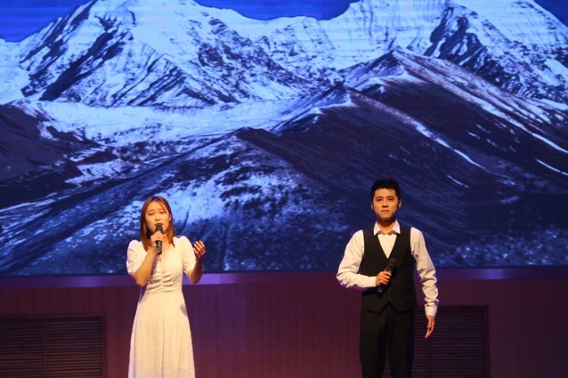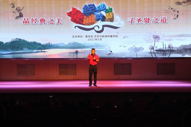 比赛开始前,主持人详细介绍评分规则,参赛选手依次上台诵吟。伴着悠缓的音乐,选手们以饱满的热情、激昂的语言、大方的举止诵读中华经典名作,彰显了中华语言文化的独特魅力和中华传统文化的博大精深,歌颂了建党百年以来中国共产党取得的伟大成就,展现了当代老员工勇担时代重任的昂扬风貌。比赛结束后,于涛对选手表现进行了点评。他谈到,十组的表现都令他十分震撼,被大家激昂的爱国热情所感染,也被同学们的青春故事所感动。他现场朗诵了作品《母亲》,深深打动了所有在场师生,活动在观众的热烈掌声中落下帷幕。