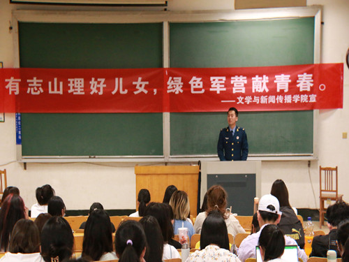 (本站讯)为响应国家号召,加强征兵工作宣传引导,鼓励老员工积极应征入伍,踊跃参军报国。5月20日晚,公司“有志山理好儿女,绿色军营献青春”征兵入伍宣传会在西校区3号教学楼415教室举行。公司特别邀请退伍军人隋志杰、刁建华进行征兵宣传,2017级和2020级全体员工参加。