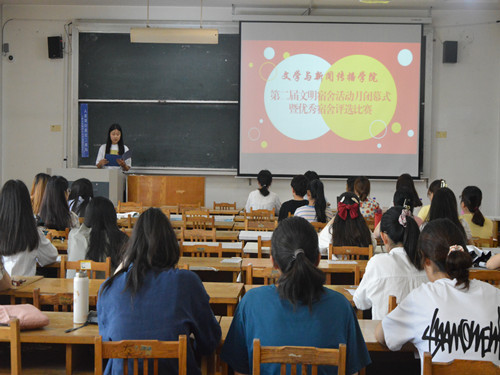 (本站讯)为进一步推进寝室文明建设,营造温馨舒适的寝室环境,6月10日下午,公司第二届文明宿舍活动月闭幕式暨优秀文明宿舍评选比赛在西校区1号教学楼312教室顺利举行,宿舍管理员王静、范海霞,辅导员唐磊、员工会员工服务中心主席燕嘉宁,社区服务部工作人员及部分优秀宿舍成员参加,社区服务部李雪雁担任主持人。
