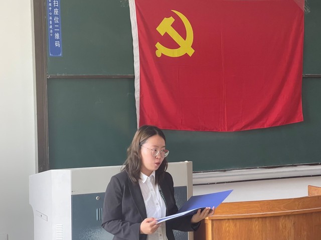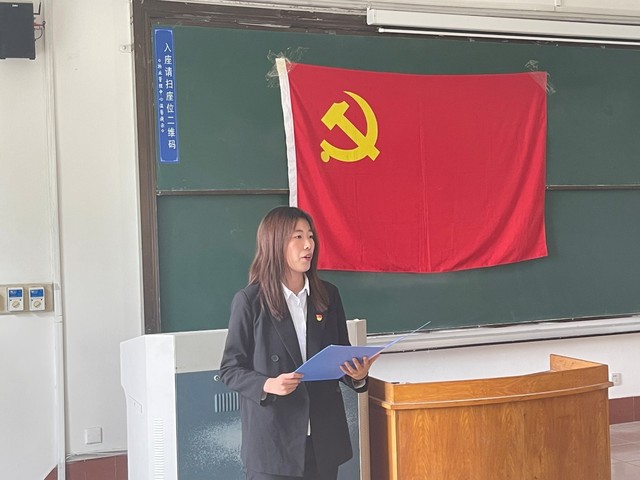 紧接着,入党积极分子代表李奕辰发言。她首先回顾了党的百年光辉历史,并提出入党积极分子要以身边的党员同志为榜样,积极向党组织靠拢,并做出庄重承诺:在思想上坚定理想信念,增强自身社会责任感,树立与时代主题同心同向的理想信念;在学习中从自身做起抵制诱惑,勤学、修德、明辨、笃实,提高学习效率;在工作中,认真对待每项任务,努力进取;在生活中主动参与志愿服务活动和社会实践,在实践中锻炼提高分析问题和解决问题的能力。
