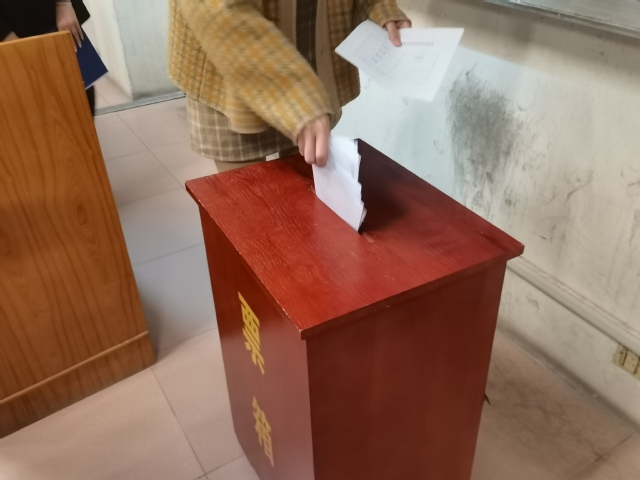 会议伊始,路畅对同学们的到来表示热烈欢迎,并向大家介绍评选活动分为优秀教师介绍、投票、唱票和统计结果四个部分。之后,进行评选活动第一项,优秀教师介绍。宣讲人毛苏宁、马庭宇、吴佳益采用PPT演示和演讲相结合的方式依次介绍张玉霞、翟羽佳和郭晓丽三位教师的教学事迹、教学特色及人格魅力,增进员工代表对候选老师的了解,赢得现场员工代表的阵阵掌声。而后,活动进入第二项,员工评选。各位同学本着公平公正、公开透明的原则进行评选,向自己心中最爱的老师投出宝贵的一票。最后,进行活动第三项,在与会人员监督下,工作人员进行现场唱票。评选过程严肃有序,有效保证评选结果的公平正义。工作人员清点票数,通过投票统计,最终推选翟羽佳老师作为fun88官网体育教师代表,参加“我爱我师”校级评选活动。此次评选活动圆满结束,现场气氛融洽,同学们热情高涨。