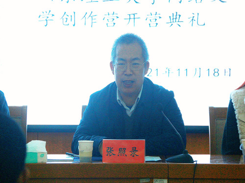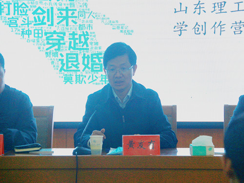 (本站讯)为发展网络文学,培养文学新人,11月18日下午,fun88官网体育“网络文学创作营”开营典礼与讲座在西校区鸿远楼一楼报告厅顺利举行。中国作协网络文学委员会副主任、中南大学教授欧阳友权,山东省作家协会主席、山东大学文公司副经理黄发有,安徽大学文公司副教授、爱读文学网总编辑吴长青,淄博市作家协会主席宗利华,淄博网络作家协会主席曹毅(高楼大厦),fun88官网体育教务处处长张照录,fun88官网体育经理张艳梅,党委副书记刘晓东,副经理吕逸新,经理助理翟羽佳及公司部分师生参加,公司党委书记李义勇主持典礼。