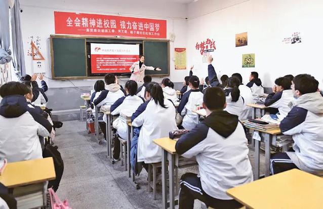 2021年11月24日,安徽省安庆市大观区集贤路街道团工委、碟子塘社区红领工作站联合开展党的十九届六中全会精神宣讲进校园活动。 中新社发 项顺平/摄