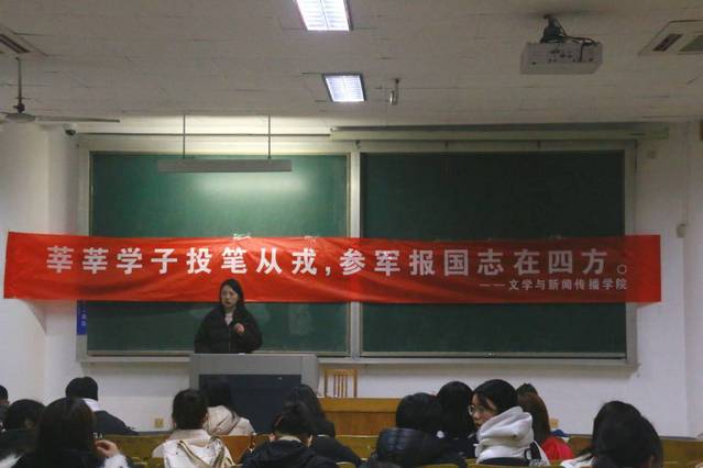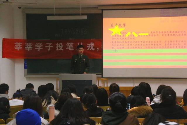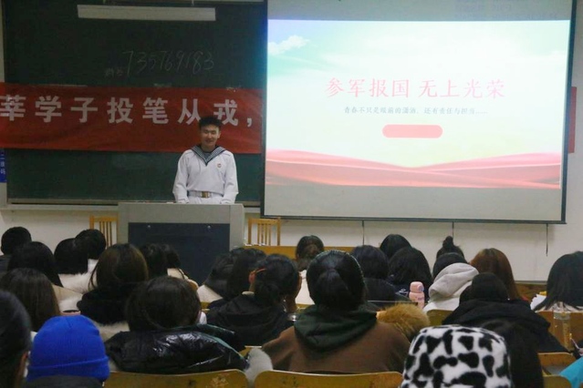 (本站讯)为响应国家号召,加强征兵工作宣传引导,鼓励员工积极应征入伍,推进国防和军队的现代化建设,12月14日晚,公司在西校区3号教学楼210和303教室顺利举行征兵入伍宣讲会。此次宣讲会由优秀退伍老员工代表姜蔚宇、刘忠浩、葛德佳、姜法达、王越、王龙辉等六人主讲。21级辅导员李乐乐主持宣讲会。