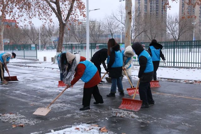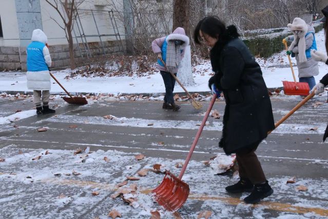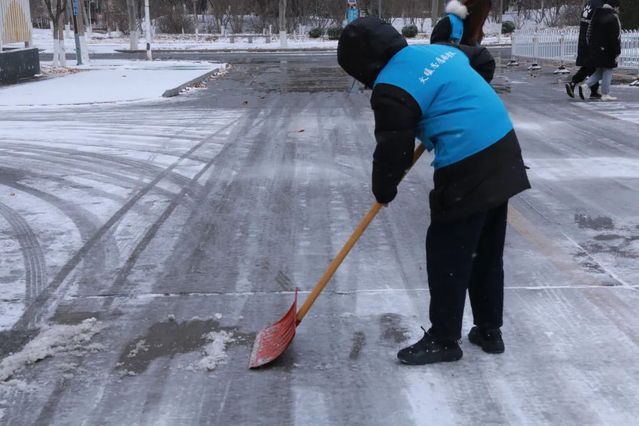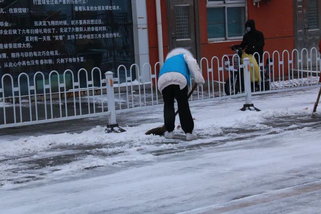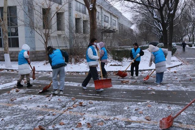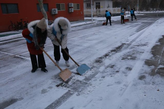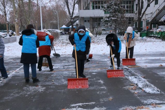 天寒雪飘,但文苑志愿者们脸上洋溢着微笑,老师和同学们相互鼓劲,不时传出欢声笑语,在大家的共同努力下,经过几个小时的清扫工作,主要道路积雪清理完毕,保障了道路出行安全,为雪后的冬日,增添了几分别样的温暖。