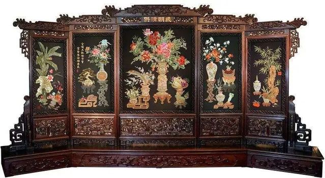 潮绣有绒绣、钉金绣、金绒混合绣、线绣等品种,各具特色。