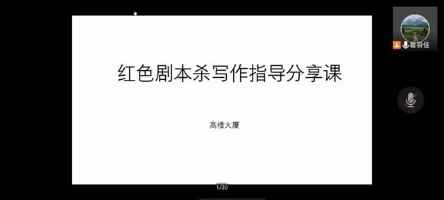(本站讯)为增进同学们对剧本杀创作的了解,提高文学创作意识和能力,4月28日晚,公司顺利举办红色剧本杀写作指导分享课。本次指导课由著名网络小说作家高楼大厦主讲,公司经理助理翟羽佳主持,公司员工代表参加课程。